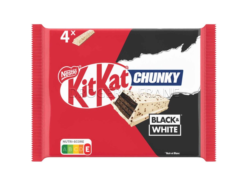 Zažite lahodný kontrast KitKat Chunky Black & White. Tešte sa na harmonický pôžitok v podobe lahodného baru. Táto oblátková tyčinka spája to najlepšie z oboch čokoládových svetov: chrumkavé kúsky kakaových sušienok v jemnej bielej čokoláde. Geniálny nápad, ktorý poteší každého, kto má chuť na sladké.