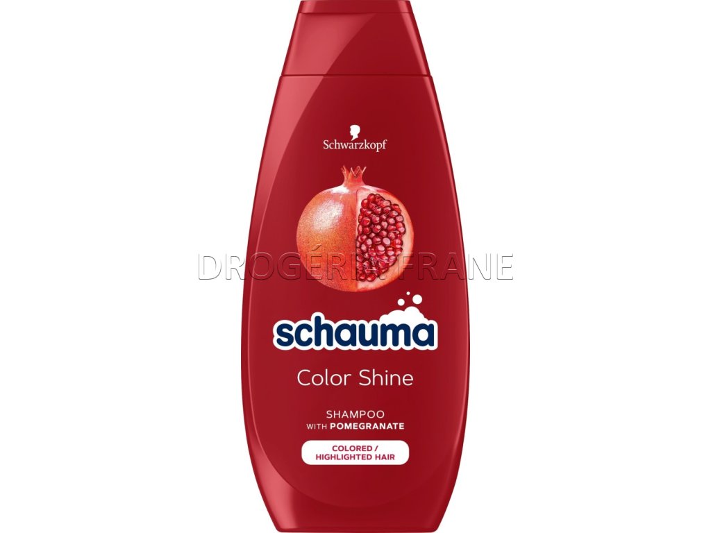 Šampón na ochranu farby Schauma Color Glanz s granátovým jablkom je ideálny pre farbené, tónované alebo melírované vlasy. Stará sa o vaše farbené vlasy a zaisťuje extra dlhú ochranu farby a dlhotrvajúci lesk. Receptúra ​​s extraktom z granátového jablka je tiež bez prísad živočíšneho pôvodu a telo fľaše (bez etikety) je vyrobené z 50% recyklovaného plastu a vrchnák z 25%. Môžete ho jednoducho znova recyklovať. Za týmto účelom oddeľte vrchnák od tela fľaše a obe zlikvidujte v plastovom odpade (prečítajte si miestne predpisy o recyklácii).