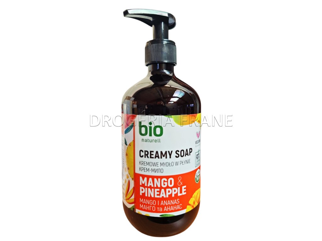 BIO Naturell MANGO & PINEAPPLE Cream Soap je prírodné krémové mydlo vyrobené z vysoko kvalitných organických surovín. Hlavnou zložkou tohto mydla je mangový olej a extrakt z ananásu, ktorý má sladkú ovocnú vôňu a zvlhčuje pokožku. Mydlo má jemnú textúru a ľahký penivý účinok, ktorý zaisťuje pohodlné používanie. Výrobok dokonale zvláda akékoľvek nečistoty a zanecháva za sebou pocit sviežosti a čistoty. Mydlo neobsahuje škodlivé zložky, nepoškodzuje životné prostredie.
