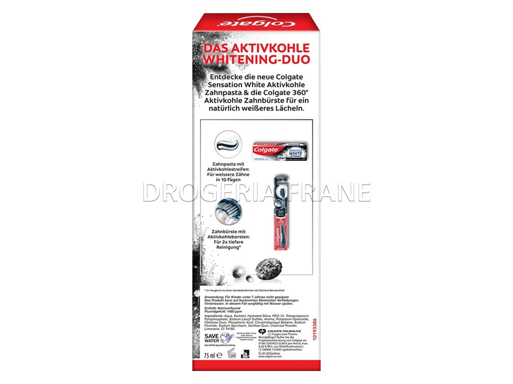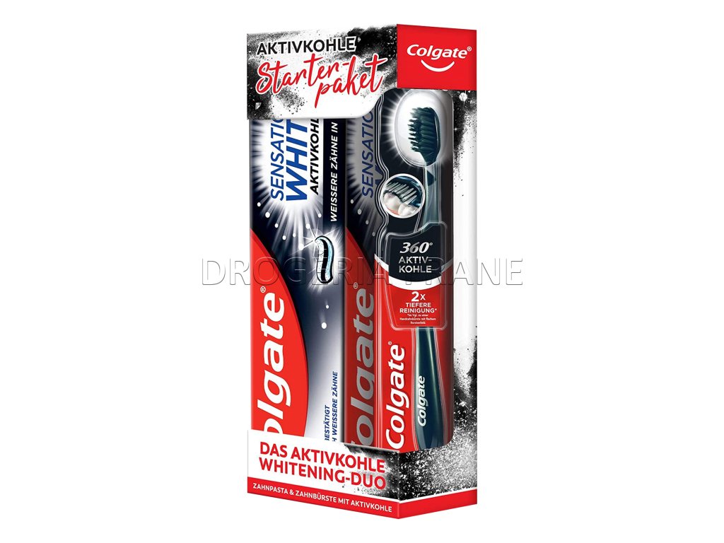Colgate Sesnsation white zubná pasta + zubná kefka 360° aktiv-kohle